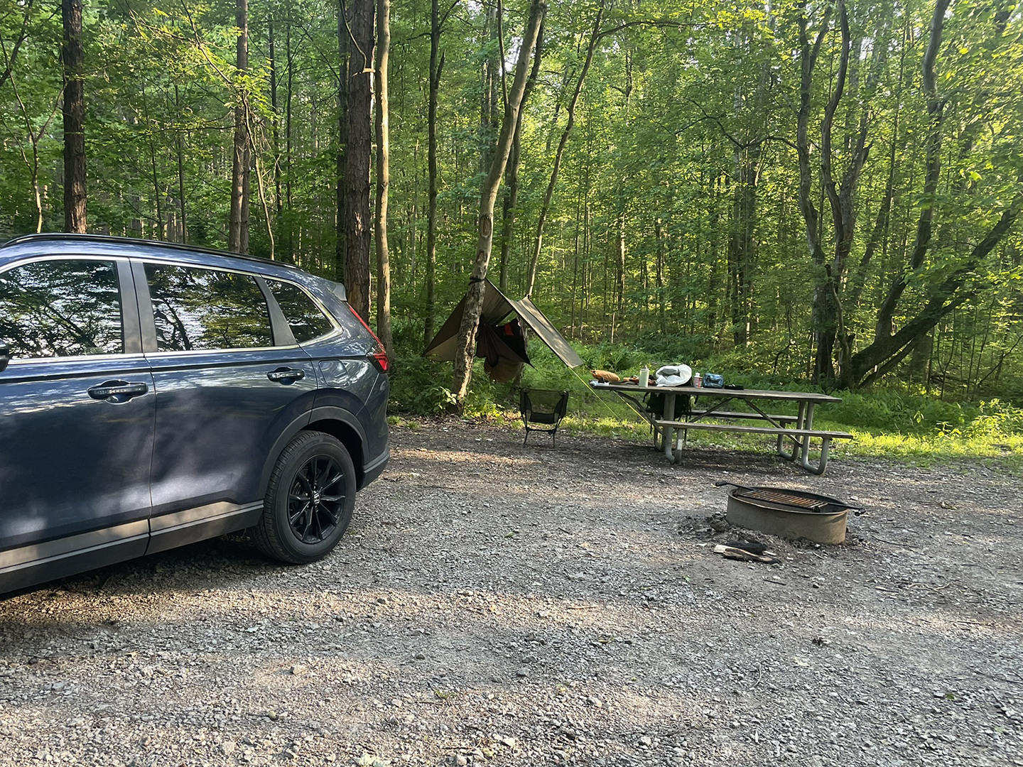 If you’re familiar with Pittsburgh’s weather, especially in the spring and early summer, be prepared for rain. In your preferred weather app, look up the weather for Hookstown, PA, but round the temperature down since you’re out in the wilderness. I made this mistake on my first camping trip there, and while I was not in danger, I was certainly colder than I wanted to be.
