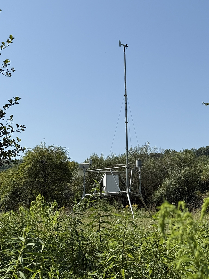 I started my hike at about 10:45 AM. The first leg of the trip followed the road I drove in on. While it was not peaceful by the road, there were plenty of flowers and vegetation along the path. But soon it turned inward and took me through some gorgeous pine forests, power lines, and grassy fields. About 15 minutes into the hike, I went a little off course to see an interesting sight, a remote weather monitoring station.