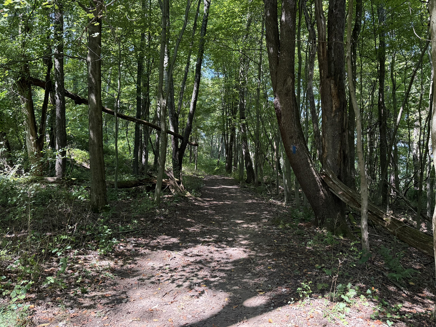 The next section of the hike was well-maintained with trails wide enough to accommodate ATVs. There were a few intersections with other trails, but GPS apps kept me on track with the loop I wanted to do. Soon, the path stayed the same, but the view changed as I got closer to Lake Arthur.